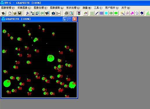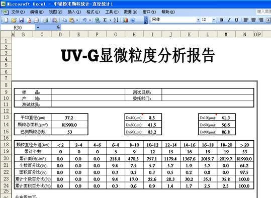 30几种参数数据。数据可以输出导入EX**L表格,对摄像的颗粒进行编号,编号跟表格里的颗粒 序